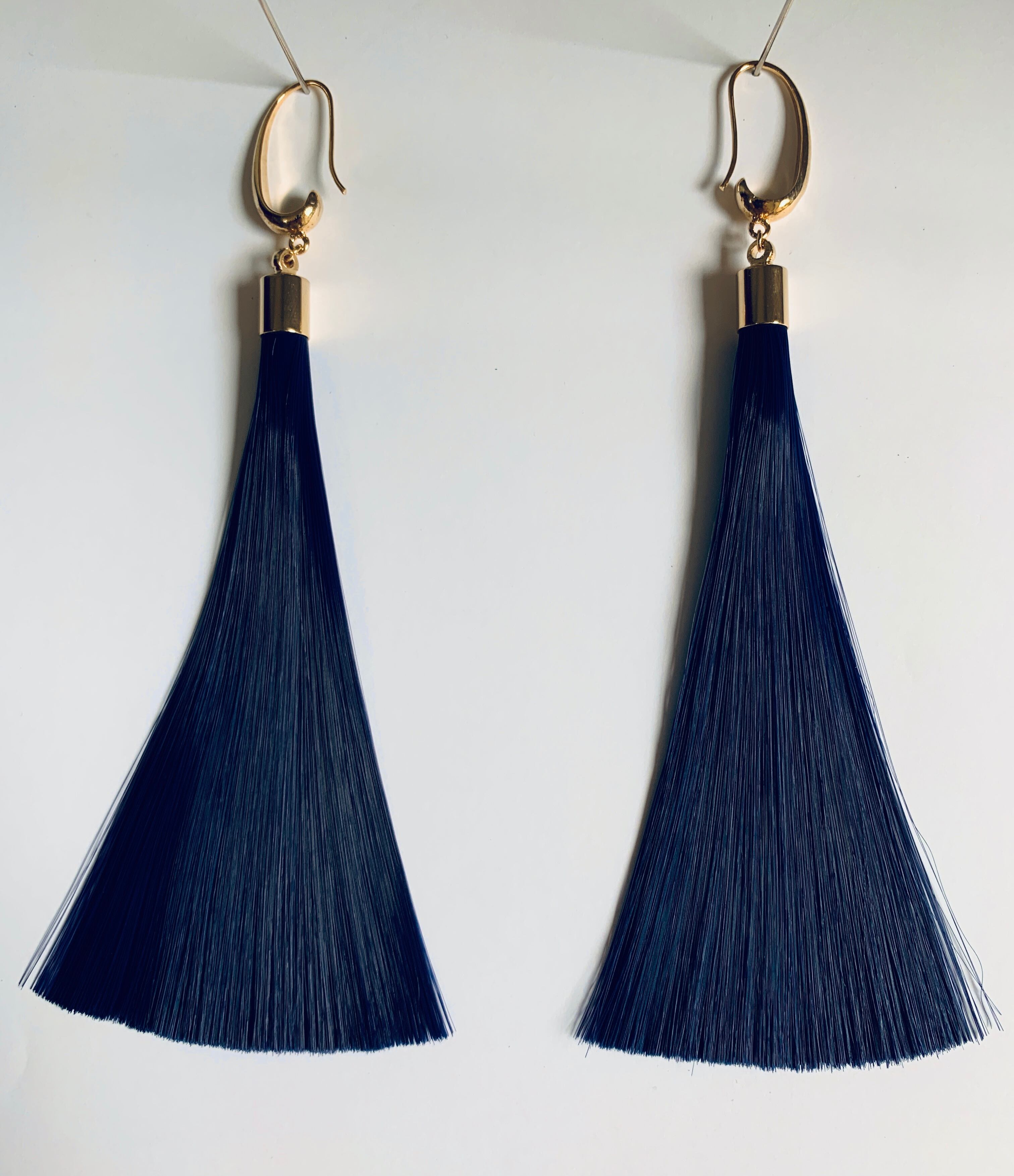 ウィッグやエクステなどでお馴染みの耐熱ファイバー毛をタッセル状にカットしたピアスです。
